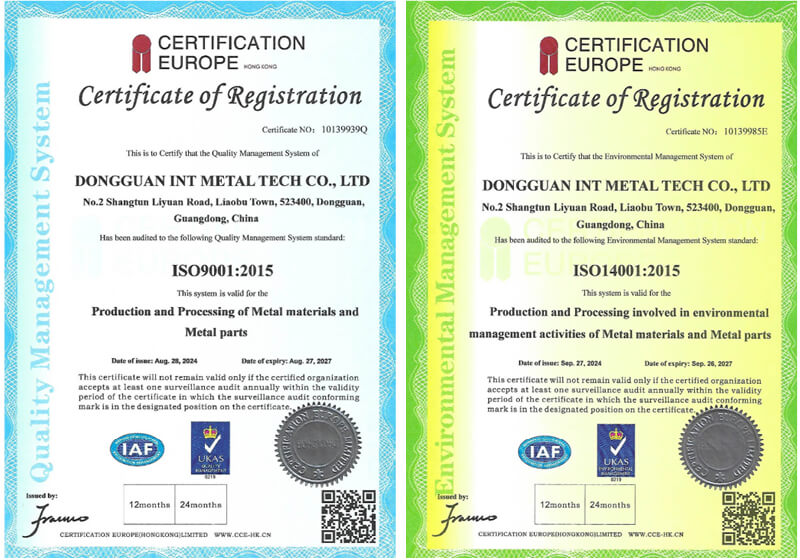 INT Ziurtagiriak- ISO9001 eta ISO14001